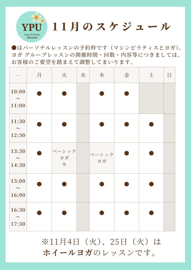 11~12月の予約時間枠とグループレッスンの開催日時について