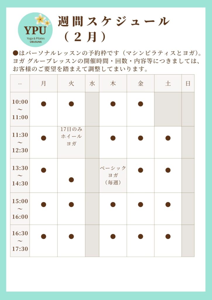 2~3月の予約時間枠とグループレッスンの開催日時について